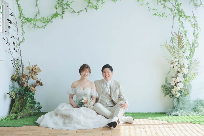 お花やナチュラルの雰囲気以外にも、グレーの背景でスタイリッシュな撮影もできます◎