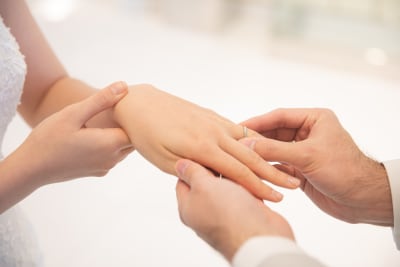 指輪をはめた瞬間、すかさずグッドポーズ👍