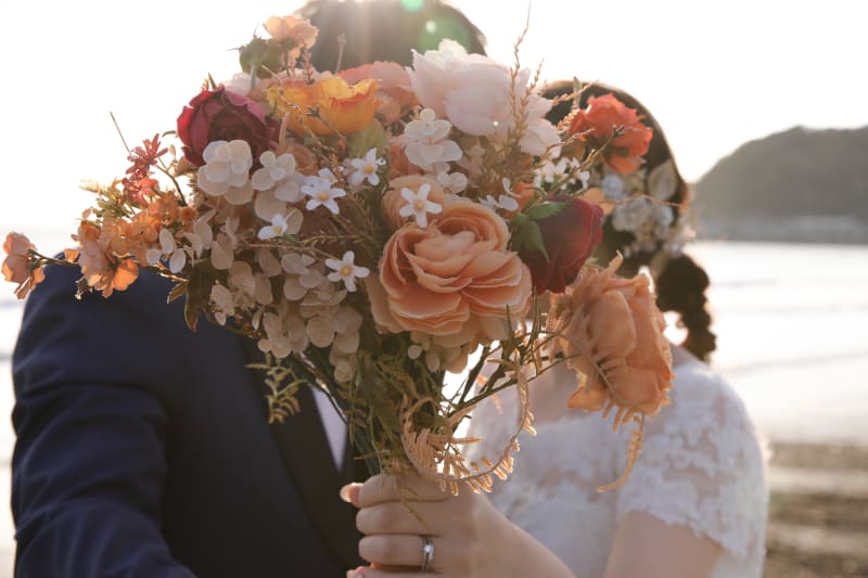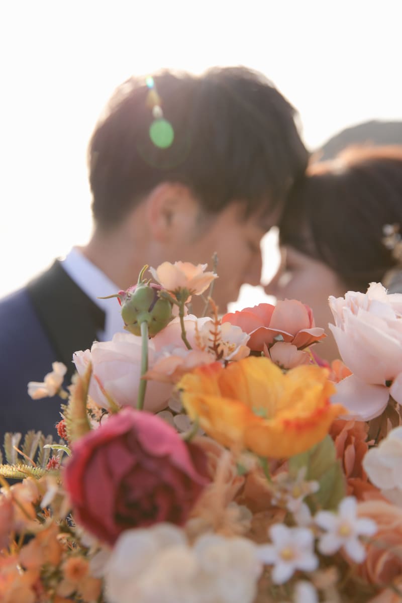 - お二人のご希望ショット、お花でお顔隠しもすごく可愛い!