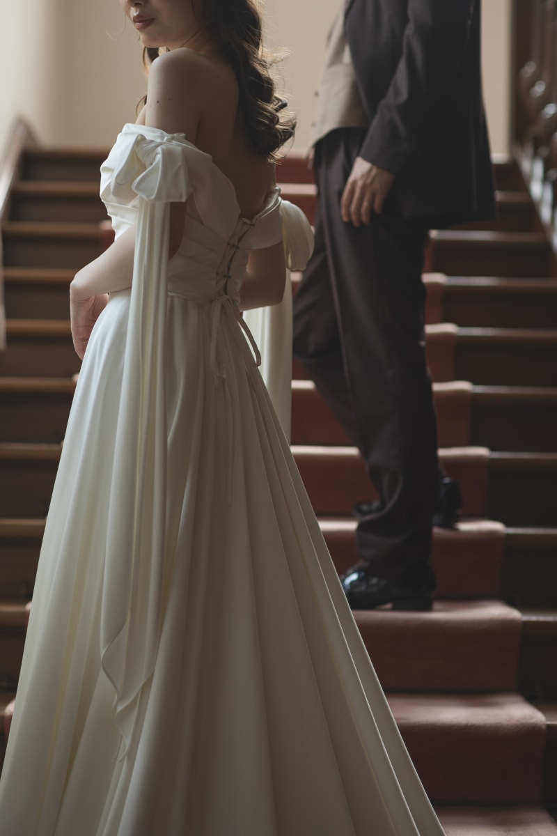 こちらは雰囲気カットで新婦様の衣装のリボン、口元入れてオシャレに仕上げた一枚