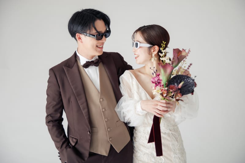 サングラスやブーケなど、シンプルな背景が「お二人らしさ」を輝かせます。