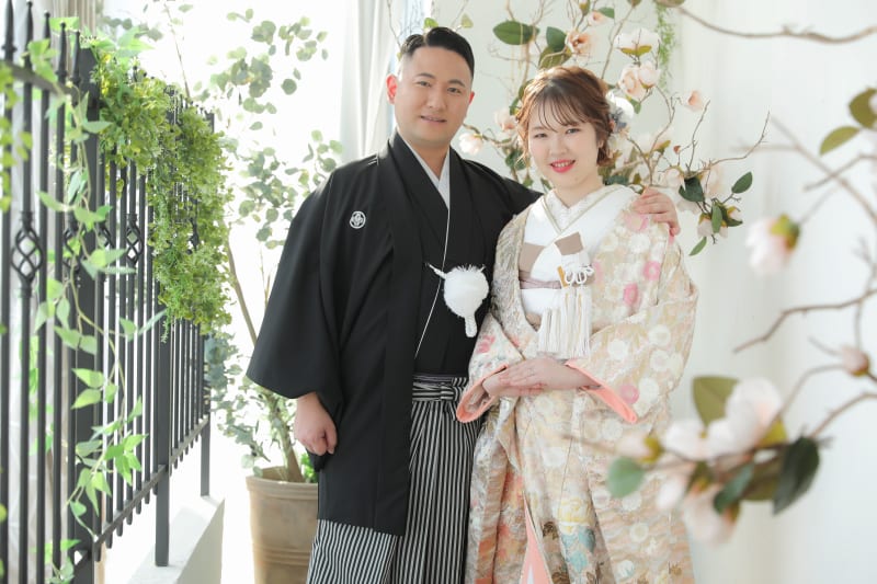 白無垢では屋内庭園でかっちりとしたお写真で、色打掛ではハウススタジオでカジュアルに撮ることができます!!
