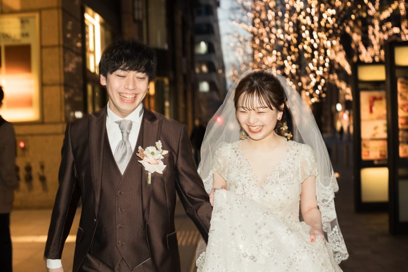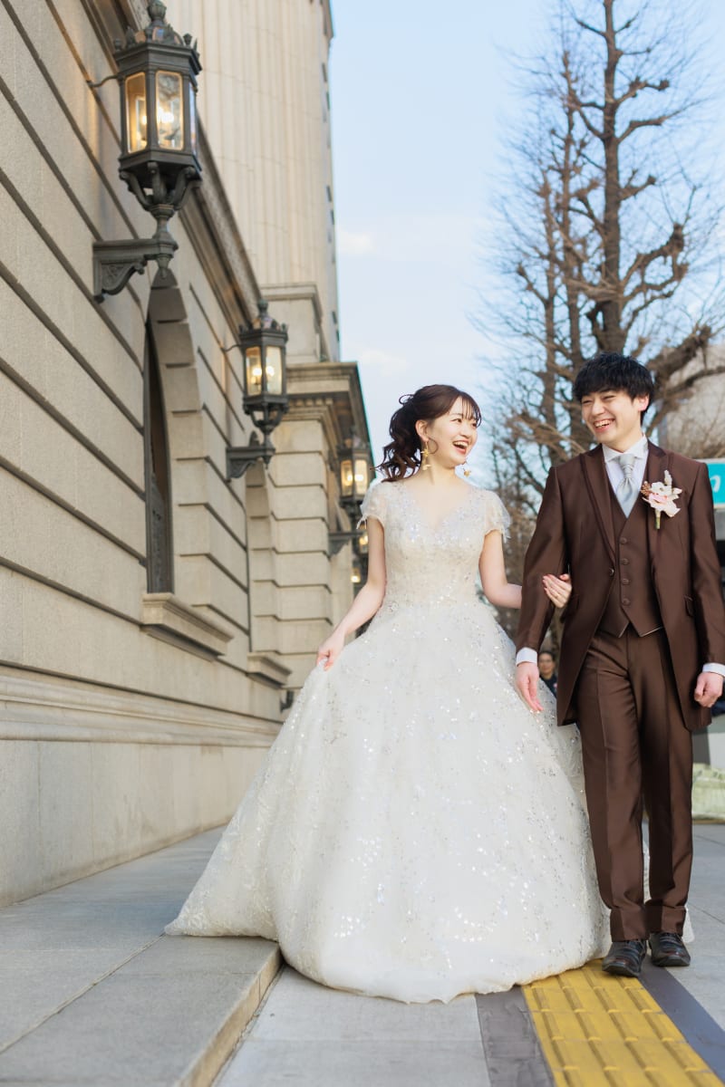 洋装のお二人と丸の内ストリートがすごく合っていて素敵でした。