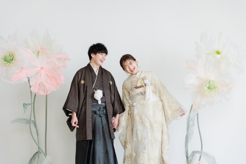 先日、和装ハウススタジオと洋装丸の内ストリートロケーションで撮影していただいた笑顔がとっても素敵なお二人をご紹介させていただきます。