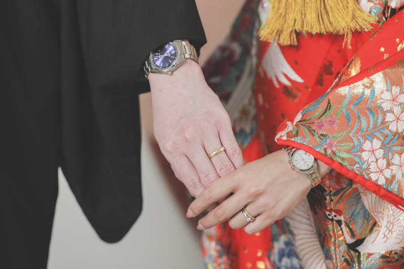 お揃いで贈り合った時計で、手元のイメージカットも撮影させてもらいました!こうしたお二人ならではの小物のお持ち込みも大歓迎です♪