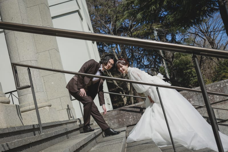 大倉山記念館のメインとなる大階段でのショット♡ お選びいただいたドレスもしっかり活かした1枚になりました^^
