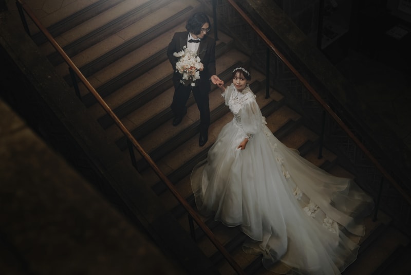 お客様の要望によりカメラマンをご指名していただきました♩ ロケ地や二人の雰囲気に合わせてドラマチックなライティングとレタッチをチョイスしましたよ!