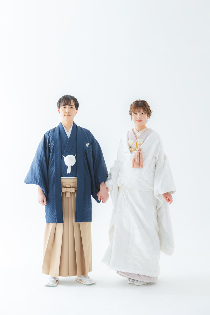 新郎様の青い着物に合わせて青い背景もかっこいいお写真になっています!