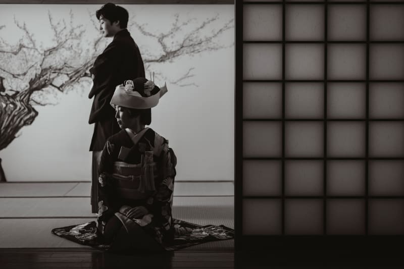 スタジオには京都の宮大工監修のお茶室があります!モノクロにするだけでこんなにかっこよくなります!