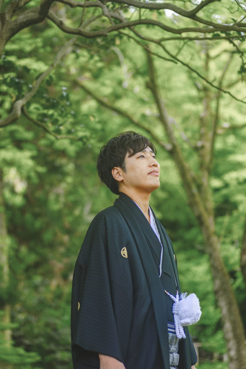新郎様は深緑な感じと紋付きがとてもかっこいいですね!