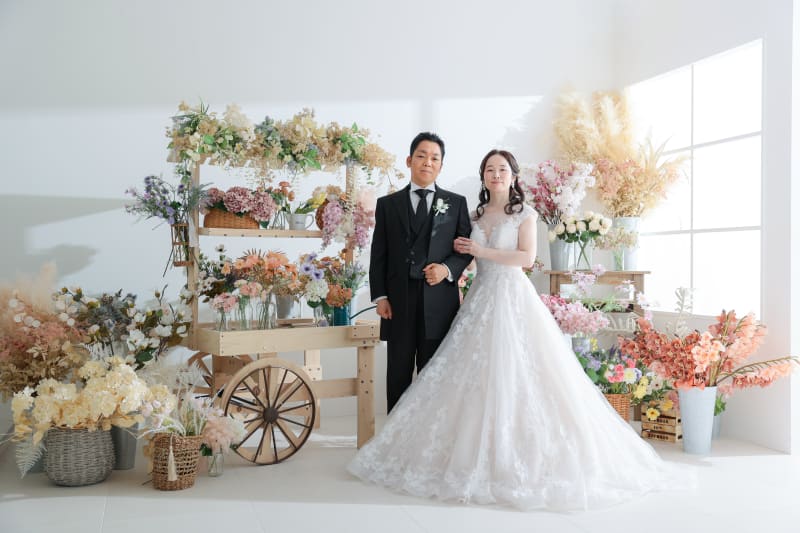 可愛いお花に囲まれて。フォーマルなポーズだけど華やかに^^