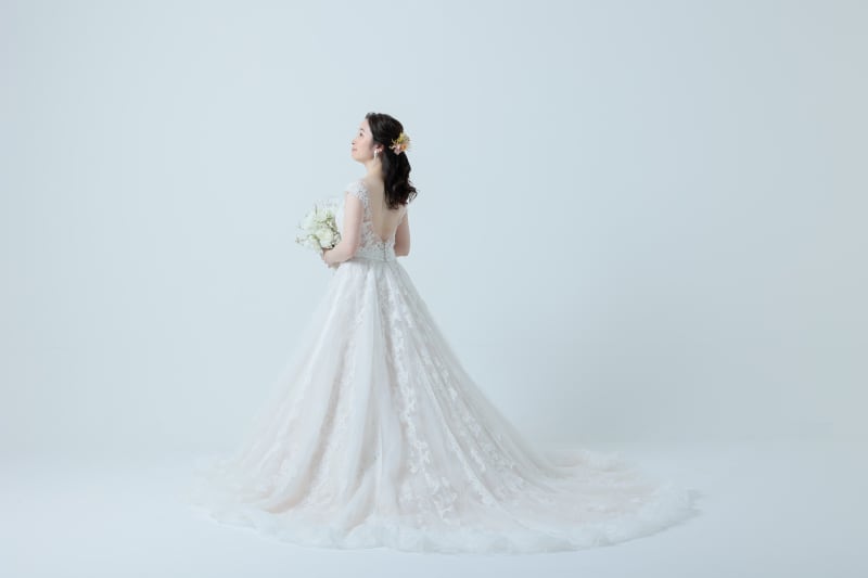 もちろん後ろ姿も残します!! ブーケを手元に、空を見上げる後ろ姿も素敵です!
