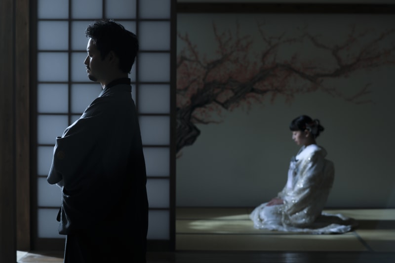 凛々しい新郎様の横顔にも神々しい月明かりが当たります。