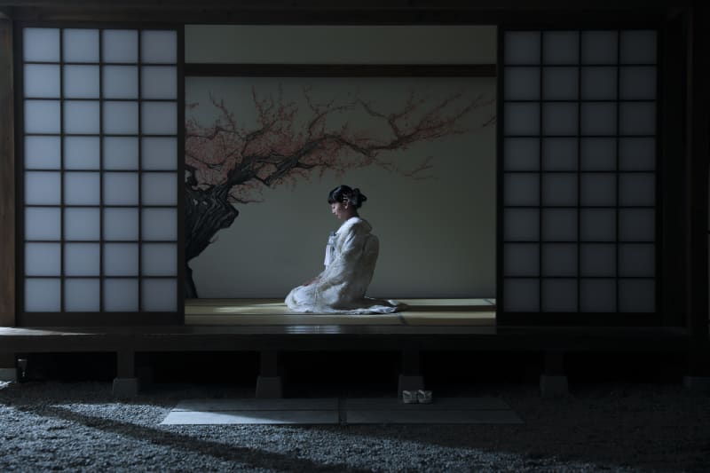 月明かりをイメージした写真。新婦様の美しさが際立ちます。
