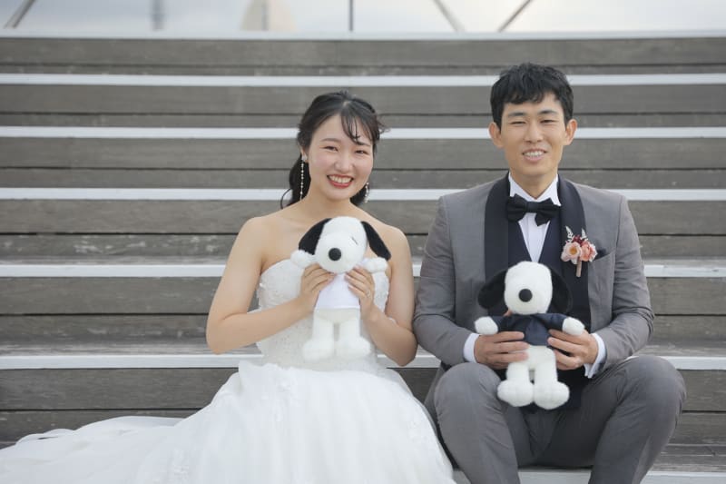 可愛いぬいぐるみを持って撮影!お二人らしさ全開ですね!