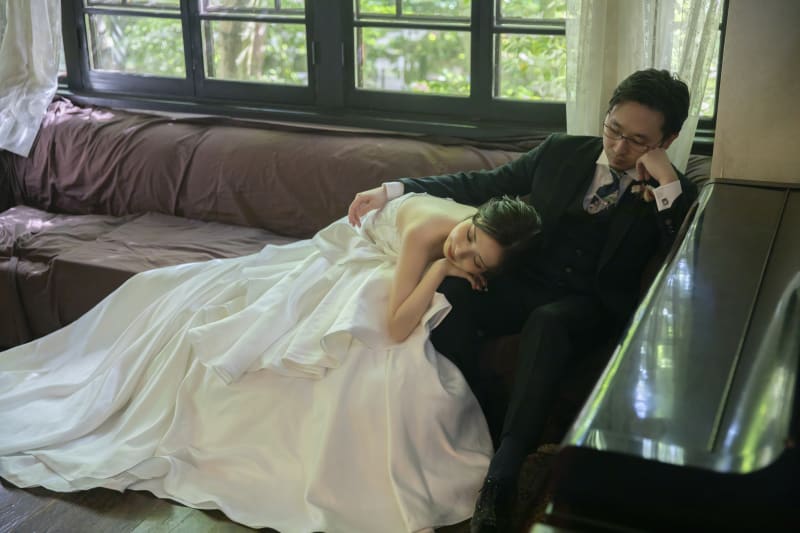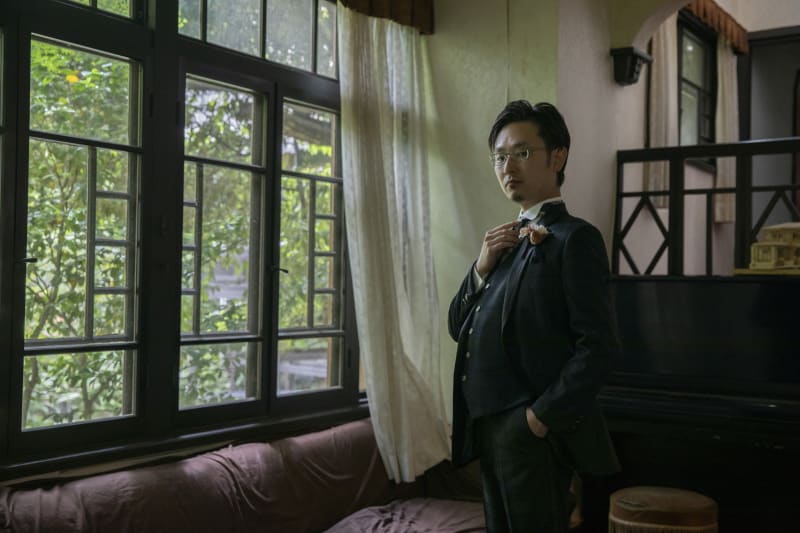 撮影の合間のほんの少しの休憩。新郎様はまるでピアニストのような佇まい。