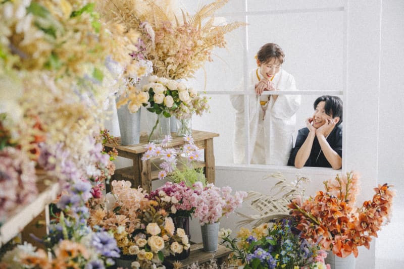 横浜駅前店のスタジオはシンプルさが売りの一つですが、こちらのドライフラワーエリアがとっても可愛くて、選ばれるお客様が多いんです^^