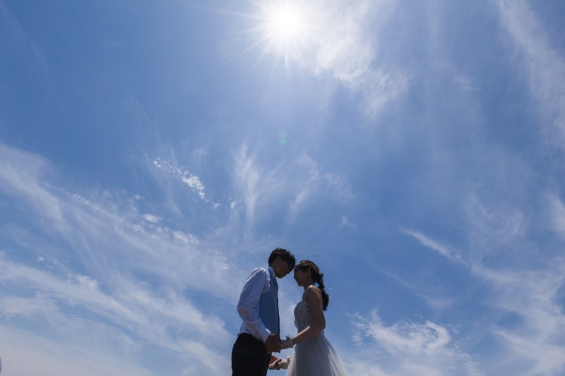 大きな空をバックにお二人しかいないお写真です! シルエットが出ていて素敵なお写真ですね