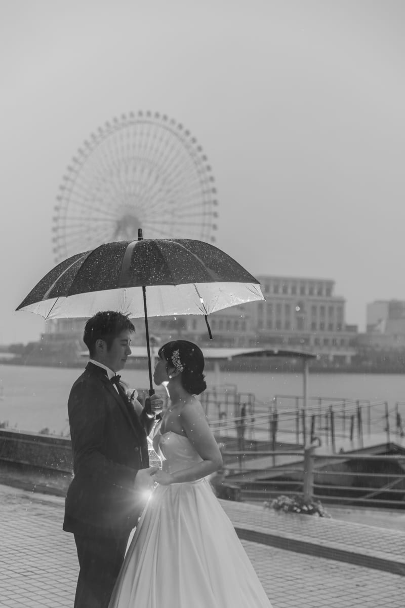 雨が降っていましたが、雨の撮影も晴れの時とは違うお写真が撮れるのです! 空も白くなっていて雪のようですね!