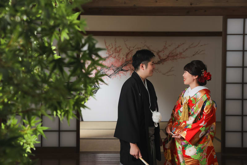 和装から撮影です! 和装は屋内庭園というスタジオでの撮影です!