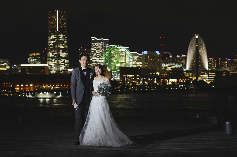 大桟橋の夜景をバックにフォーマルポーズ^^ ご挨拶ようにお使いください!