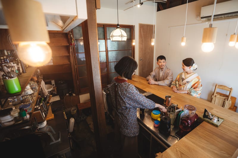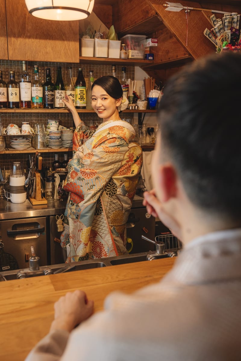 今回は二人の出会いの場になったご友人のお店で撮影した写真をご紹介します!