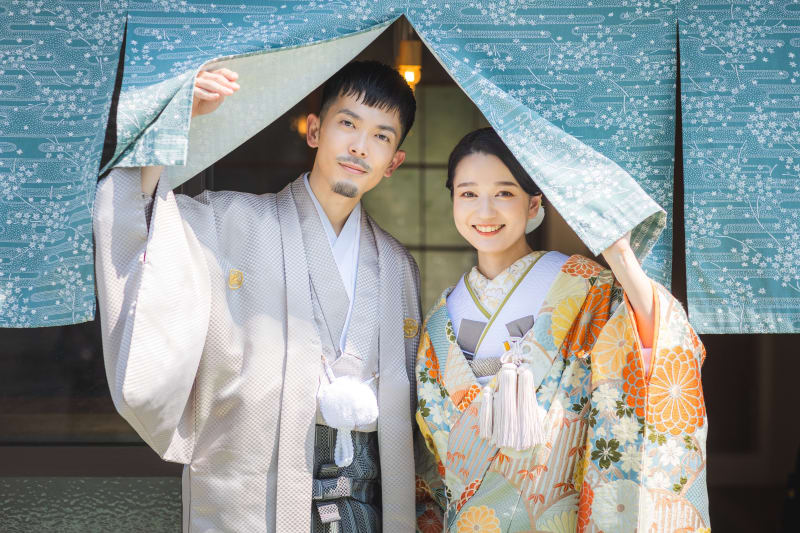 ご新婦様がお店の手伝いをしている時にご新郎様がお店に来て、その姿に一目惚れしたそうです、、、