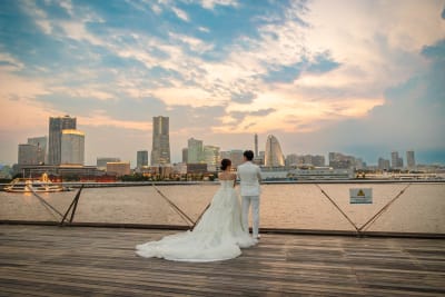 みなとみらいの景色が綺麗に見える大桟橋の撮影はとっても素敵です♪