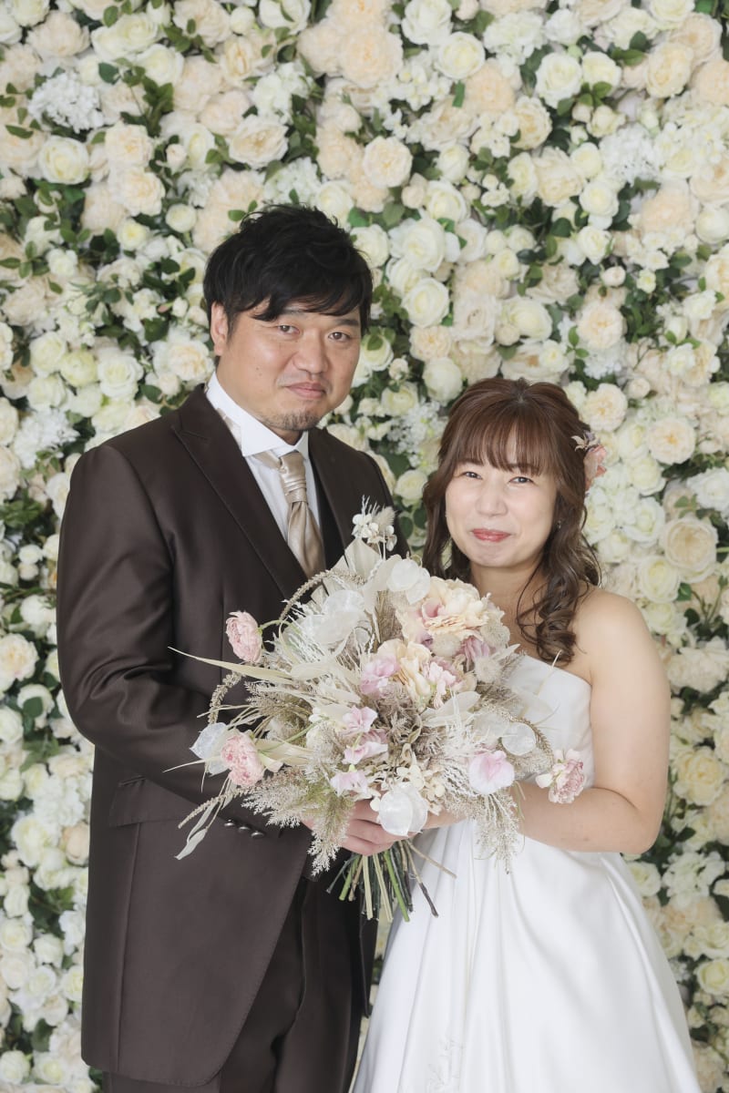 ブーケも薔薇の色味も淡い色なので、よりお二人の笑顔に目がいきますね