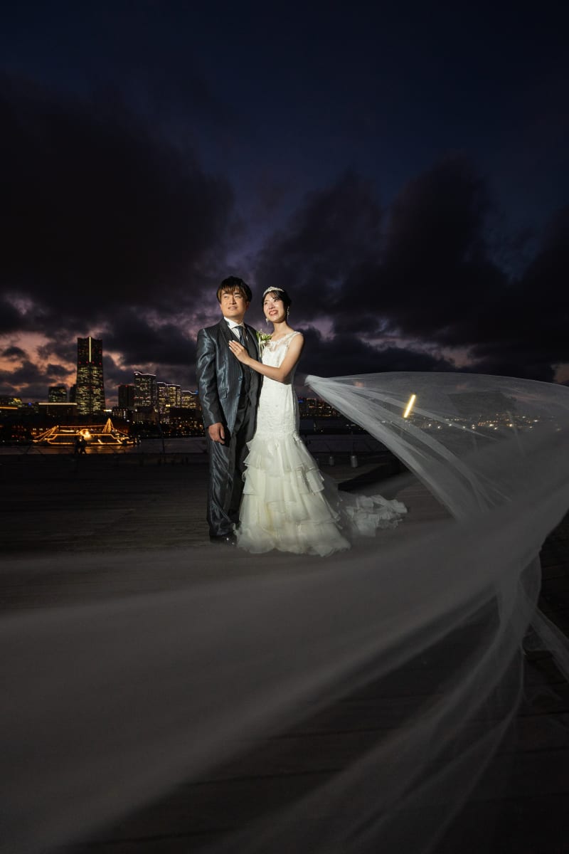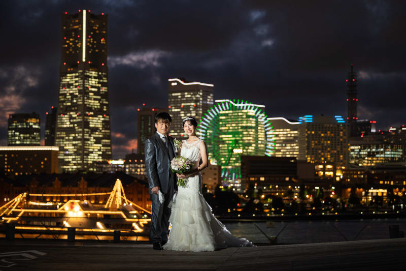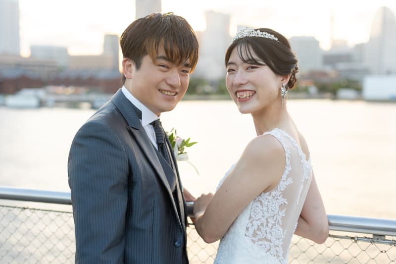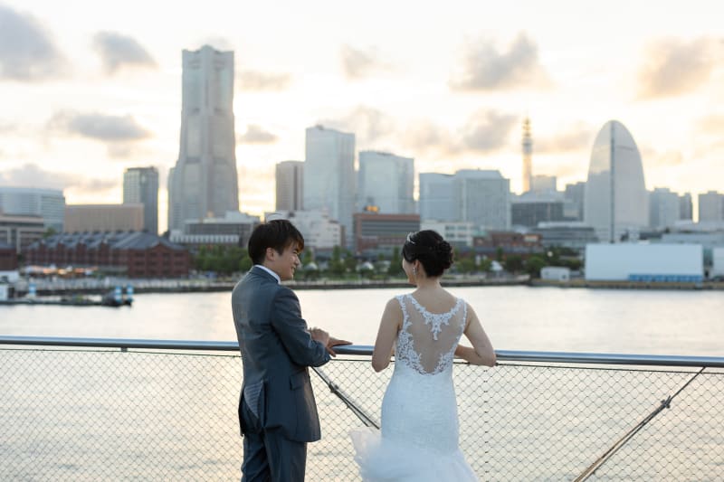 【横浜で記念日】汽笛が二人のスタートを祝う横浜のロケーションで美しい一枚を