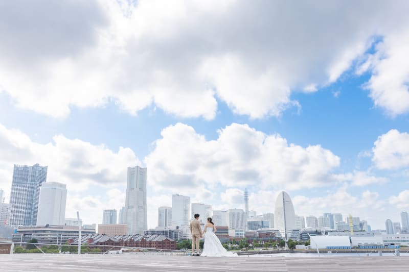 みなとみらいを一望できる大桟橋ロケーション◎この日はとっても天気が良く、様々な雲と一緒に撮影しました^^