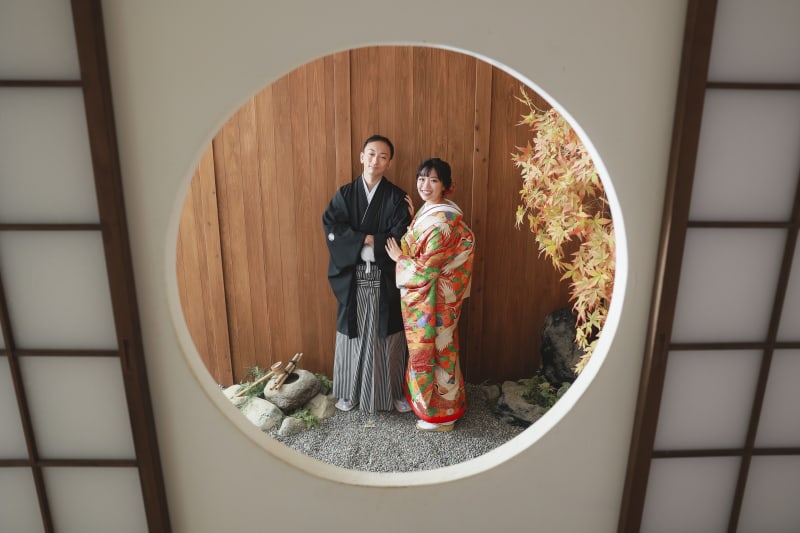 お茶室を背景に立ち姿のお写真。 フォーマルのお写真は大事なのでしっかりお着物もと整えて撮影します!