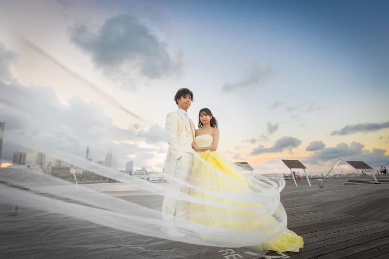 二人でお気に入りの旗と撮影! 撮影にはお二人のお好きなものを持ってきてください!