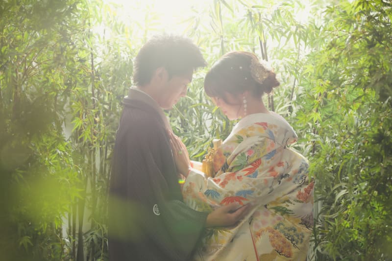 竹林の中でおでこを寄せ合うお二人がドラマチックですね!
