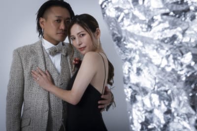 シンプルな背景で座っているお写真もお二人の表情が際立ってとっても素敵に仕上がりました!
