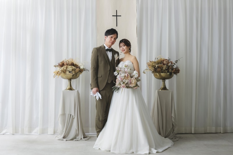 先日、スタジオアクア横浜みなとみらい店のハウススタジオにて、優しさ溢れる新郎様と笑顔が素敵な新婦様のウェディングフォトを撮影させていただきました。