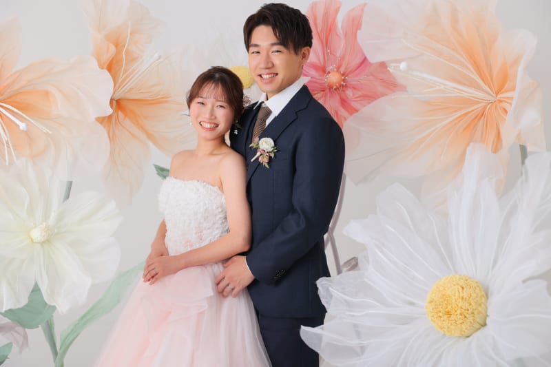 お二人のお顔よりもとっても大きなサイズのお花は、お写真を一気に華やかにしてくれます*
