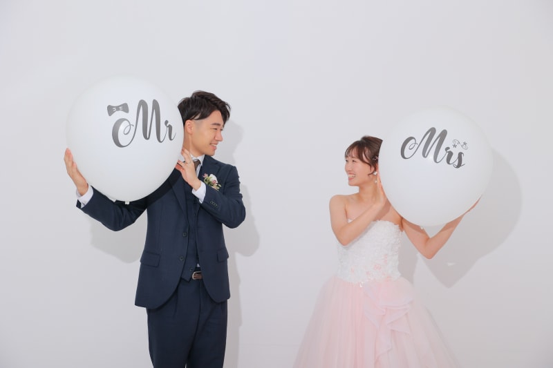 シンプル可愛いバルーンを使用したカットも◎ご新郎様が頑張って膨らましてくださいました!笑