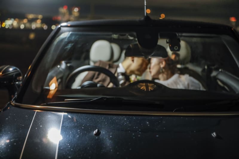 お二人をぼかして、愛車を主役に。磨き上げられたボディが光ます。