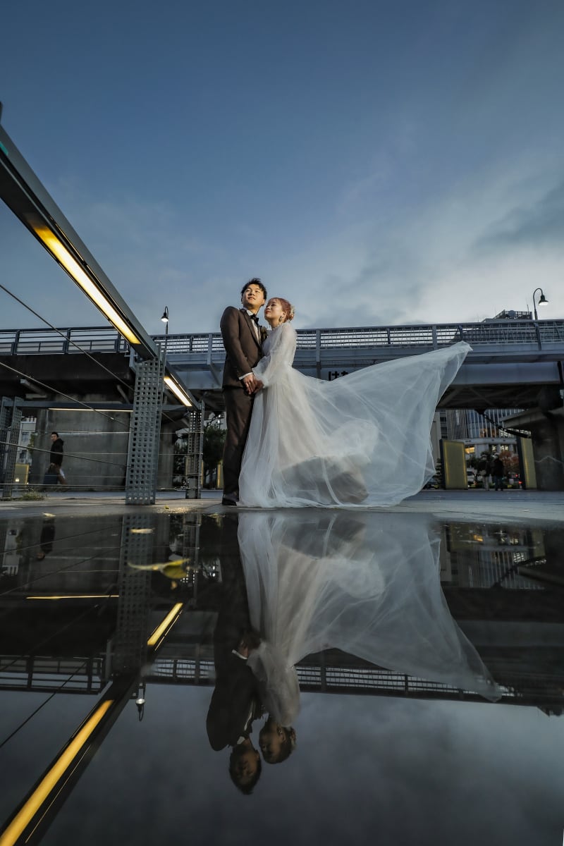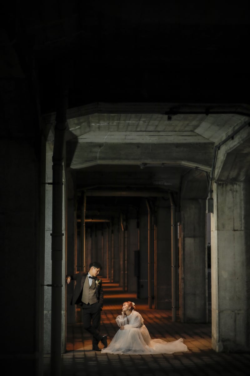 ポーズを変えてよりお洒落に。外灯がさらに雰囲気を演出。