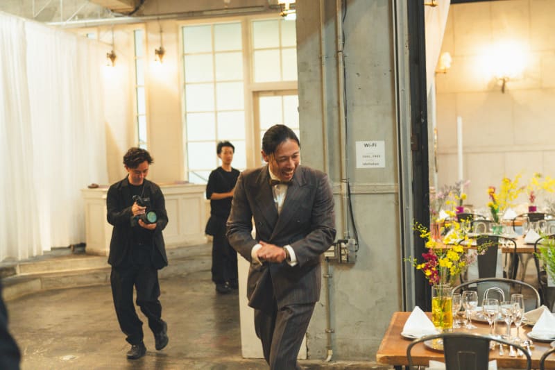 さっきまでの緊張が嘘のように新郎様ノリノリで入場🎵