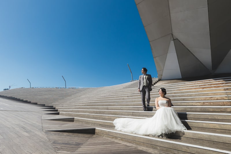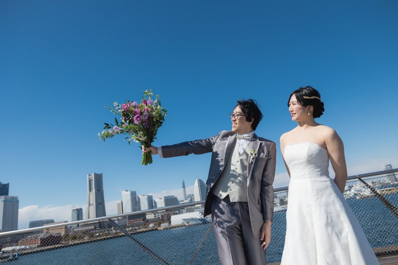 【横浜で記念日】汽笛が二人のスタートを祝う横浜のロケーションで美しい一枚を