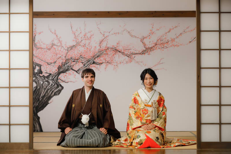 - 写真のように着物を下ろして撮影できるのはスタジオならでは!