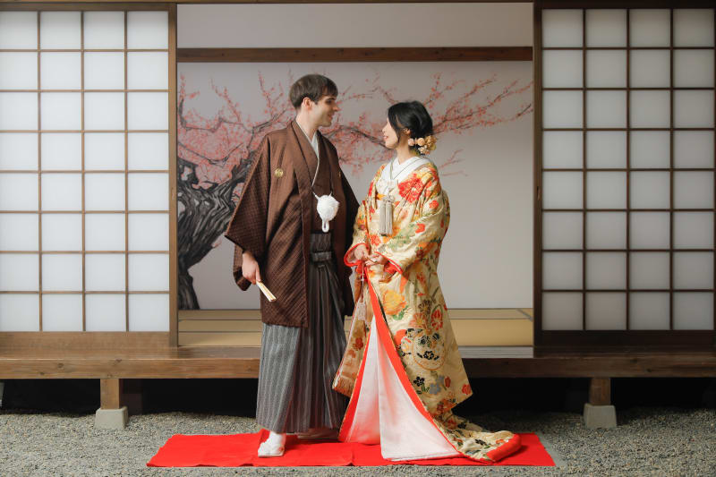〈 和装 〉ご来店回数 2 回(オンライン相談会の場合は1回)撮影相談会 → 撮影当日 (衣装選びは撮影当日に行います) → 商品の発送