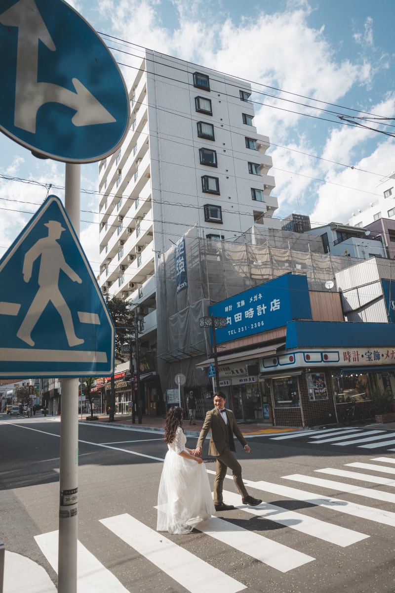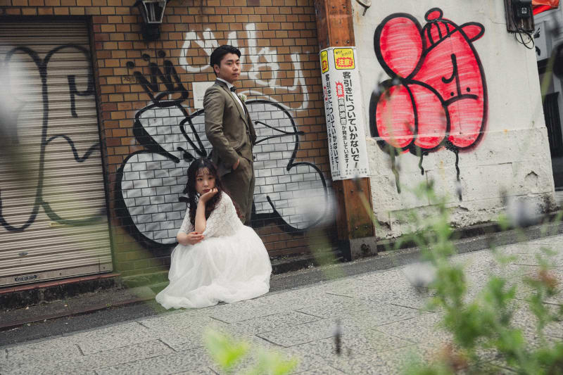 横浜では大さん橋や三渓園など少しかっちりしたイメージが多い中、こういった自由なテイストのストリートショットも可愛いですよね!ストリートフォトのいいところは時間に追われない、歩きながらいいところを見つけて自由な撮影ができるなどがあります!わいわいしながら可愛い看板を探したり、スプレーアートを探したり、、、