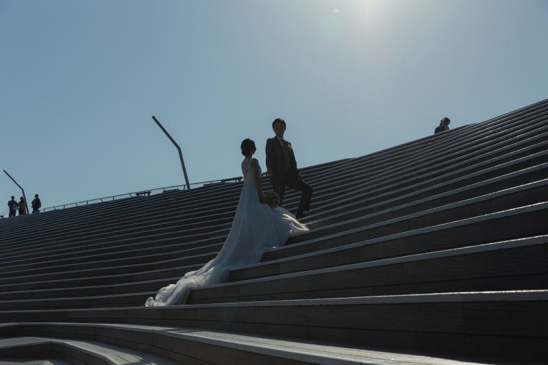 今回は、横浜の大人気ロケーションである大桟橋にて、ウェディングフォトを撮影させていただきました。