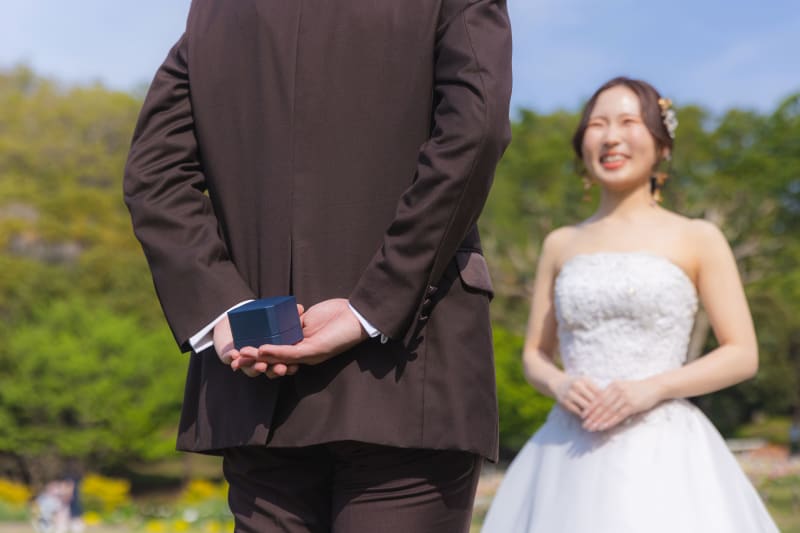 撮影のクライマックスは、新郎様からのサプライズプロポーズシーン。喜びに満ちた新婦様の表情がとても印象的で、そんな瞬間を写真に収めることができました。