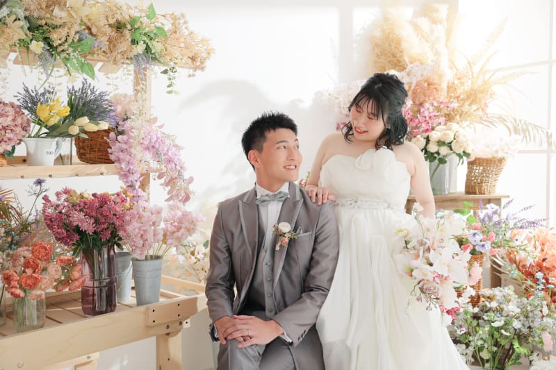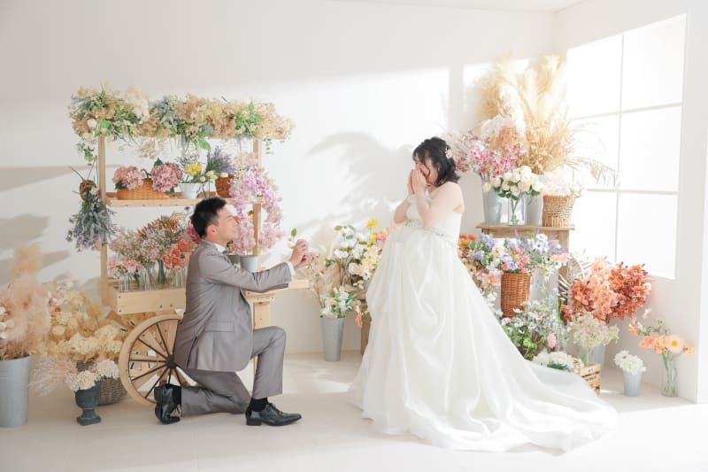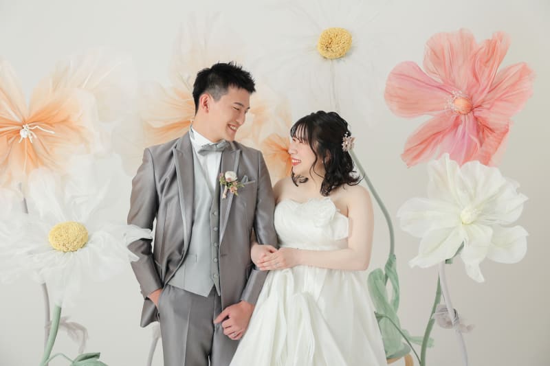お二人の雰囲気と、スタジオのアレンジすることのできる可愛い背景とがとっても相性良く笑顔絶えない撮影になりましたね!