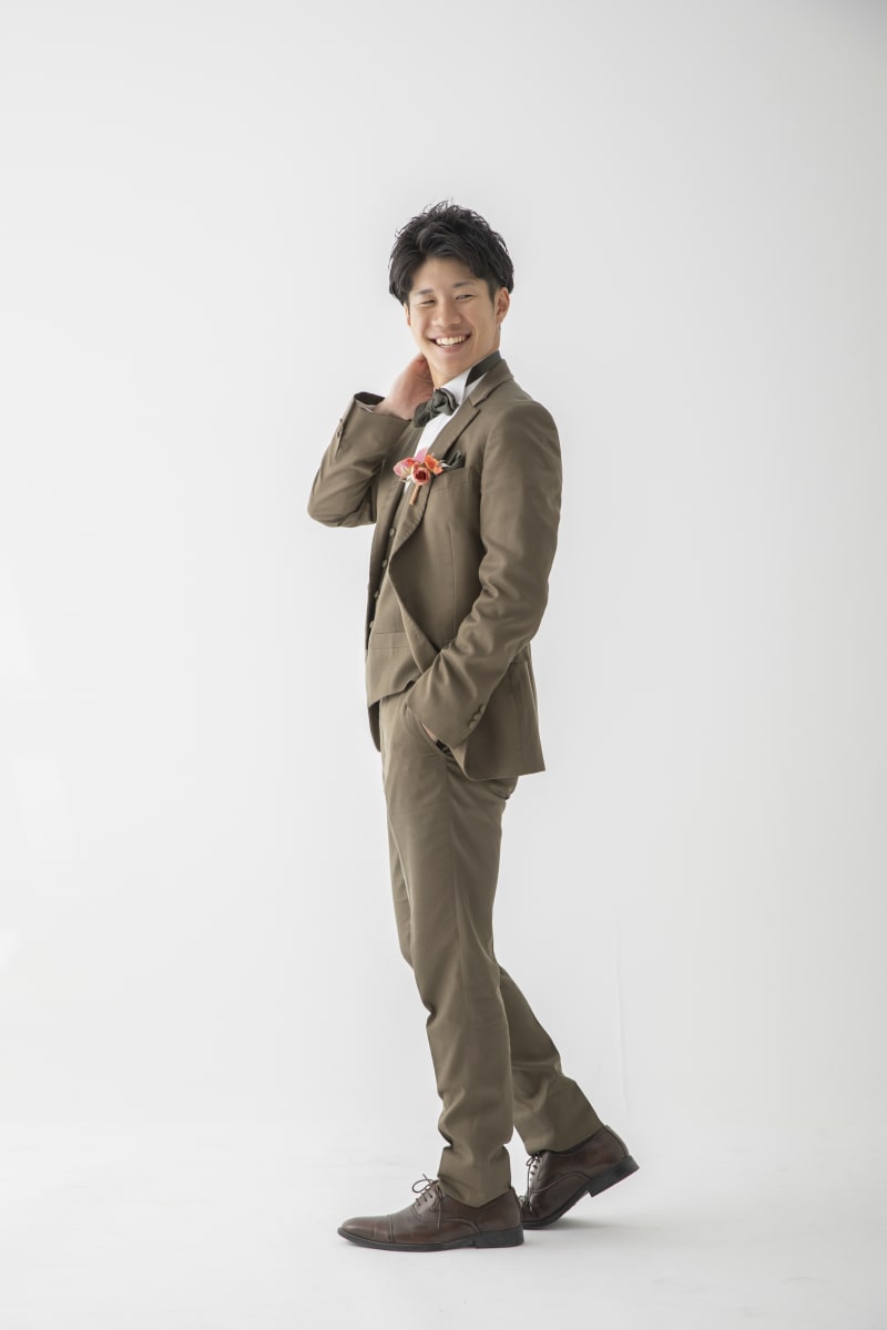 爽やかな笑顔の新郎様。その笑顔の先には新婦様がいらっしゃいます。