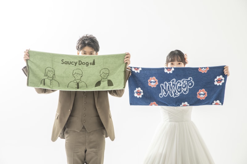 お二人がそれぞれお気に入りのバンドのタオルを持参されました。